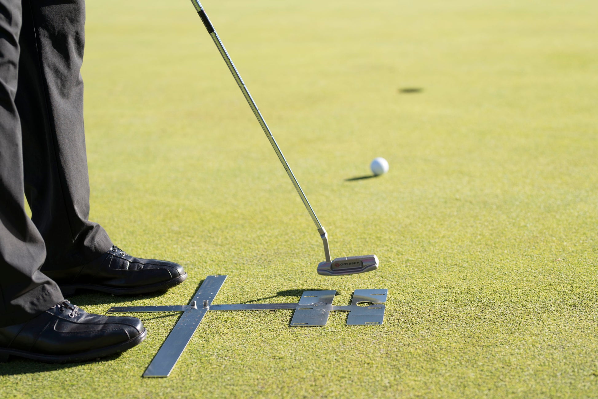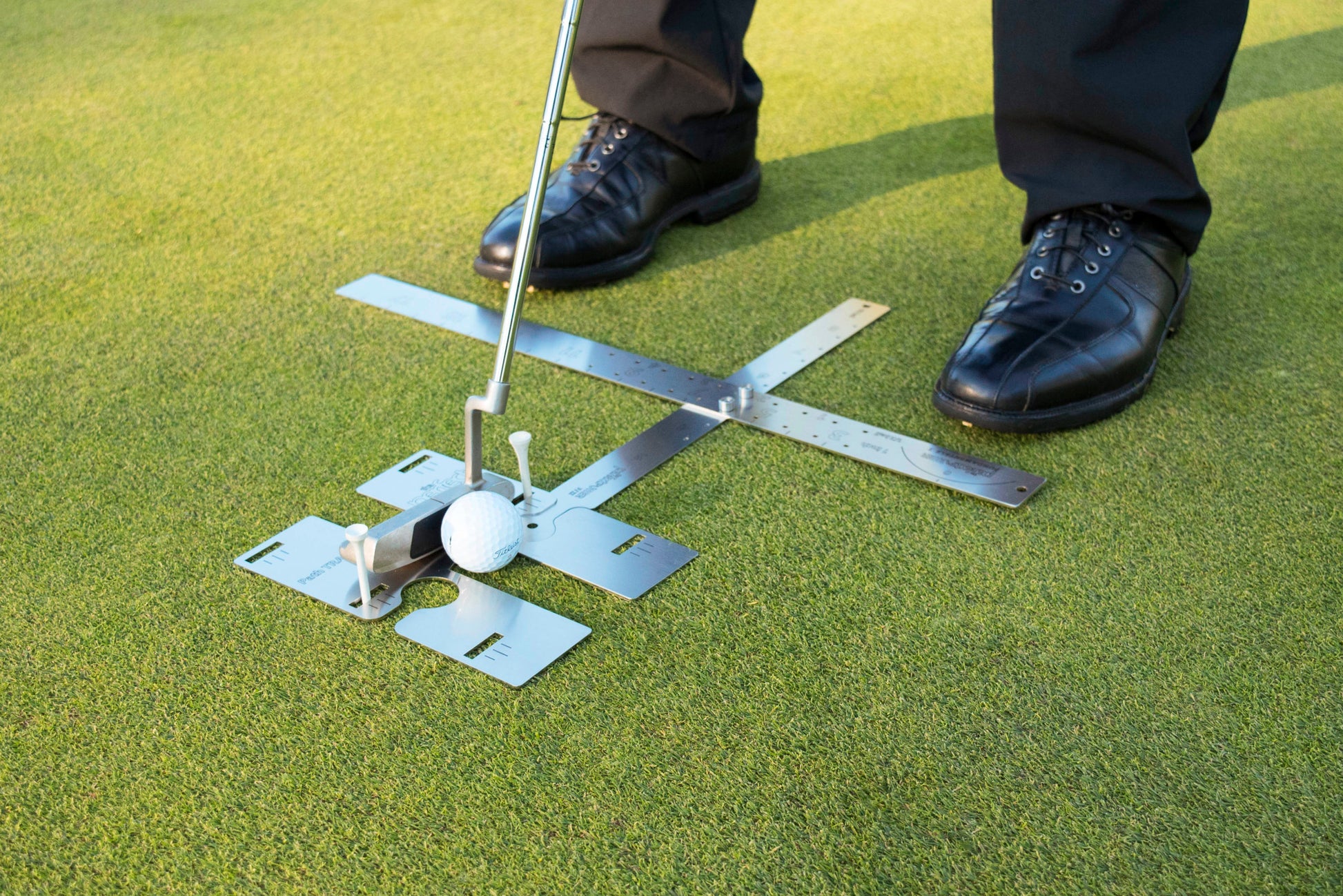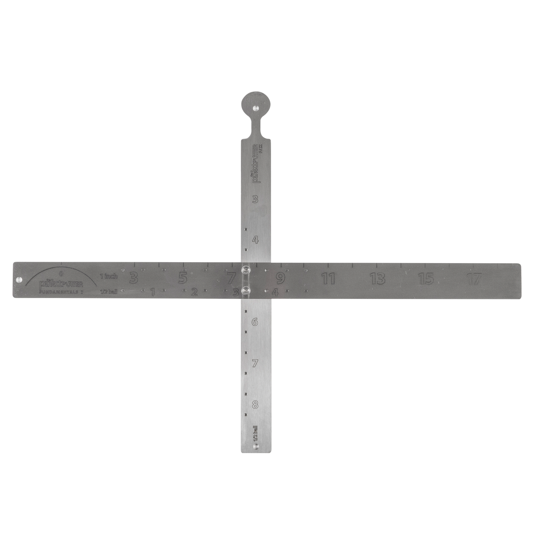 This training aid is designed to keep all key set up putting fundamentals consistent. The Fundamentals will help you with alignment, stance width, ball position and eyeline. The 2 rulers can also be used to test your consistency getting the ball started on line.