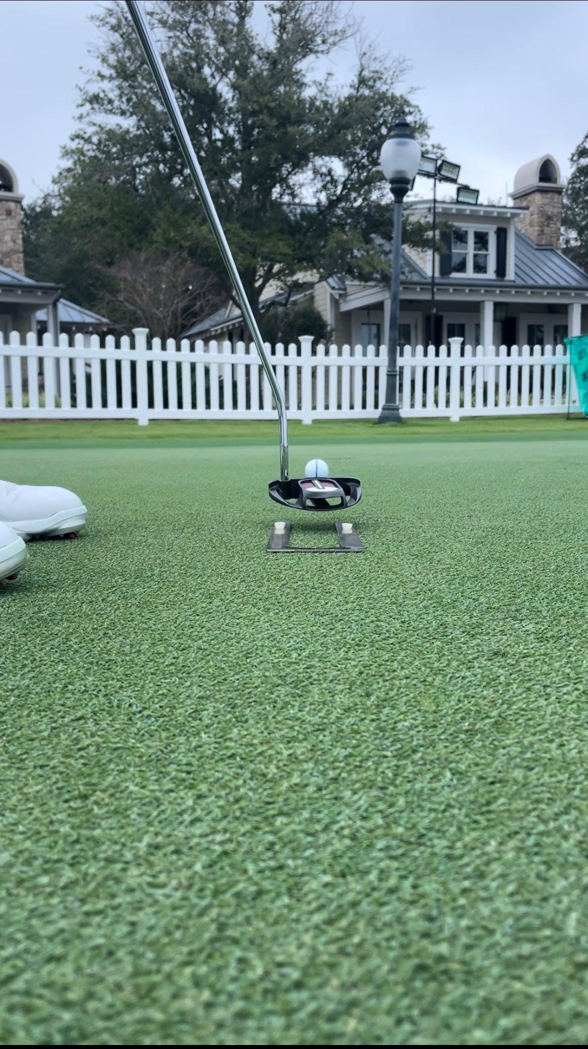 The U allows you to practice with perfect alignment and having the ball and putter on the ground. This feature was highly demanded by PGA Tour players!
